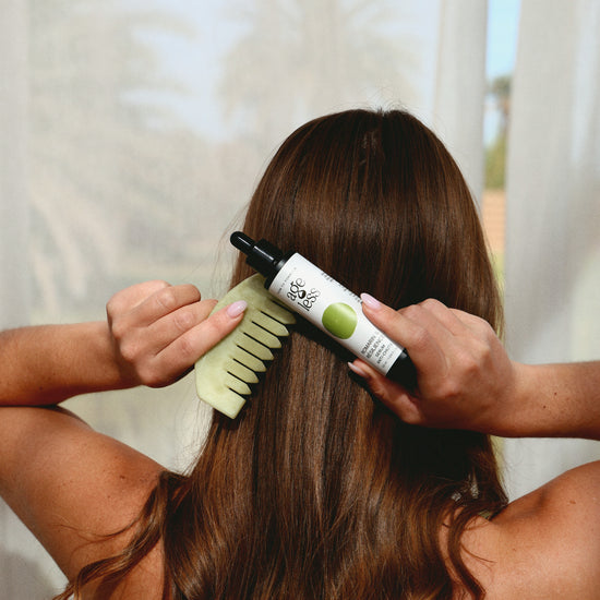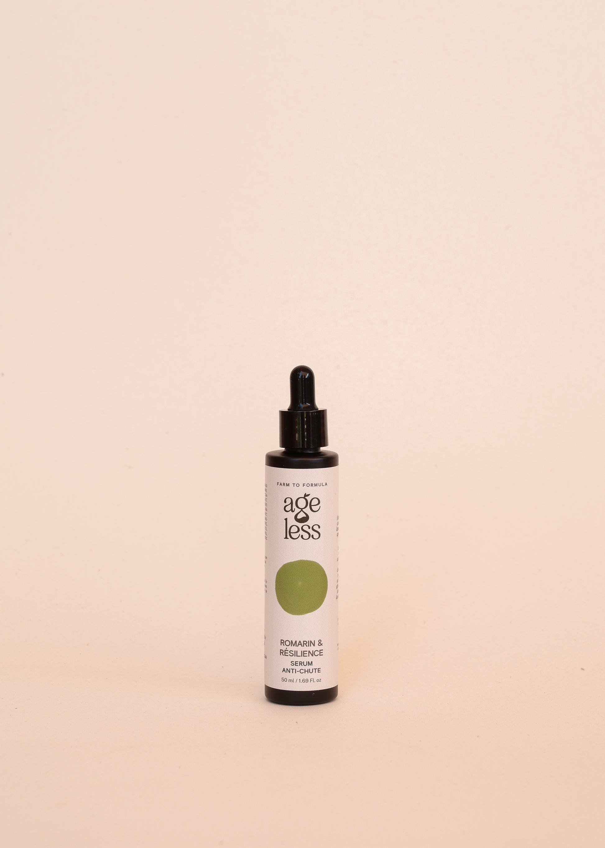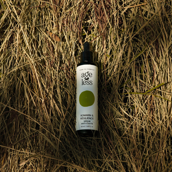 Our lightweight Romarin & Résilience Anti-Hair Loss Serum is designed for dry or damaged hair that needs daily support. Infused with rosemary water, plant extracts, moisturizers, and amino acids, it smooths, eases styling, boosts shine, and helps reinforce hair from root to ends — without leaving any residue.